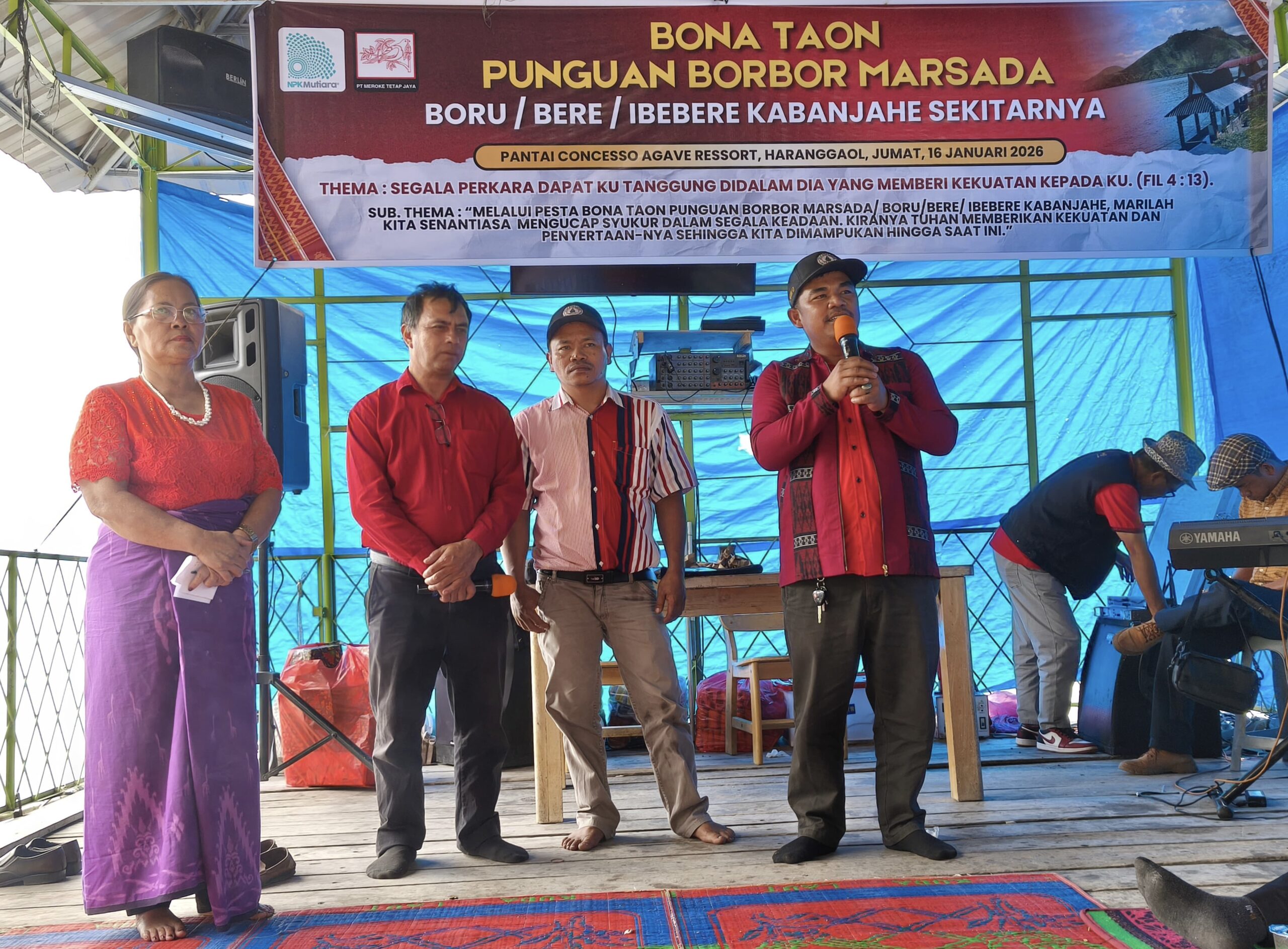 SIMALUNGUN, SUMUTBERITA.com – Punguan Pomparan Raja I Borboran Borbor Marsada Boru, Bere, dan Ibebere Kabanjahe sekitarnya menggelar acara Pesta Bona Taon 2026 di Pantai Concesso Agave Haranggaol, Kec. Haranggaol Horisan, Kab. Simalungun, Jumat (16/1/2026).