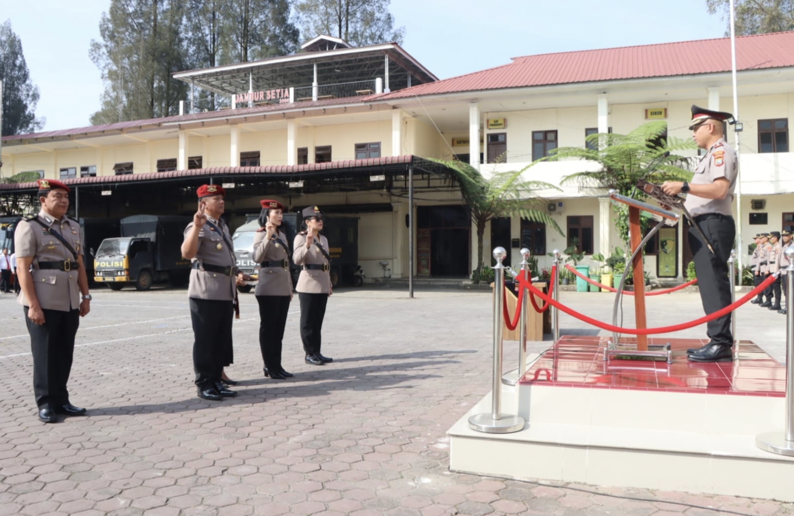 Berdasarkan amatan, upacara tampak berlangsung khidmat. Kapolres Tanah Karo AKBP Pebriandi Haloho bertindak sebagai Inspektur Upacara dan AKP Elva Hendrik Tarigan sebagai Perwira Upacara serta Ipda Elwin Hutagaol sebagai Komandan Upacara.