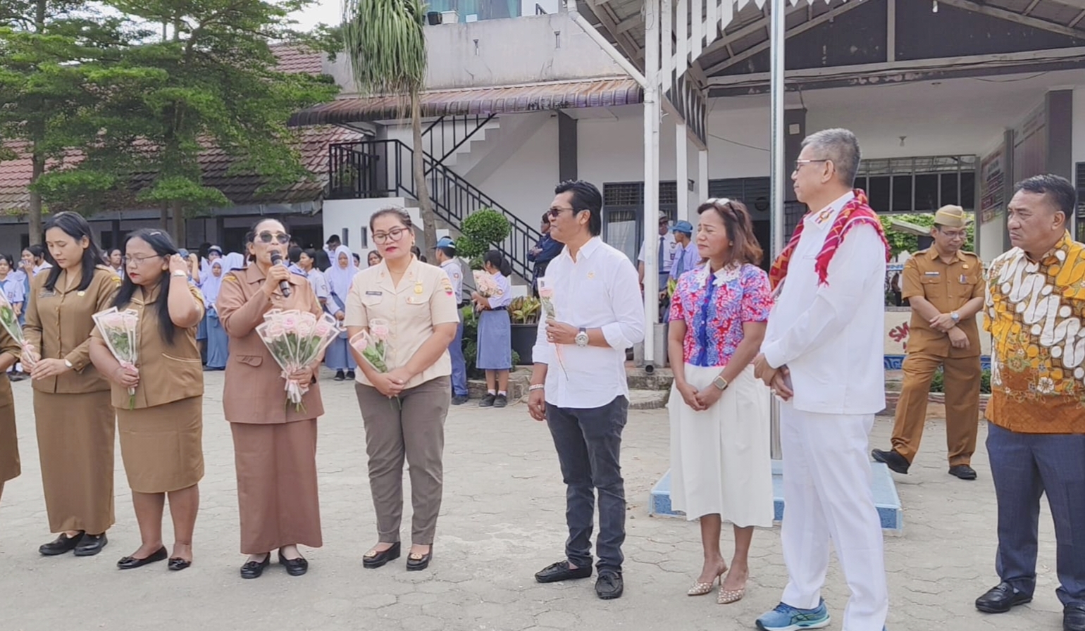 KARO, SUMUTBERITA.com – Sekitar 80-an siswa-siswi SMA Negeri 1 Kabanjahe pagi itu masing-masing membawa sepucuk surat bergandeng sekuntum bunga. Surat itu adalah “surat keadilan” berisi dukungan moril sebagai rasa empati untuk sang guru yang dinilai mendapat kriminalisasi dari aparat penegak hukum.