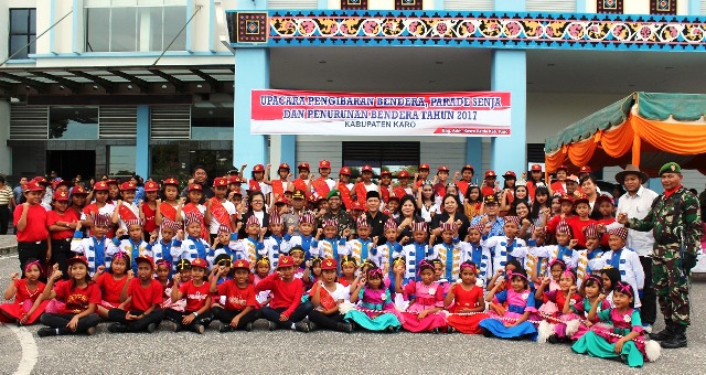 Dandim 0205/TK Letkol Inf Agustatius Sitepu memimpin upacara pengibaran bendera merah putih, parade senja dan penurunan bendera tahun 2017 di halaman Kantor Bupati Karo, Senin (17/7/2017).